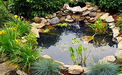 Mala jezera dizajnirana za dekoraciju vrta, često sa ribama i vodenim biljkama.